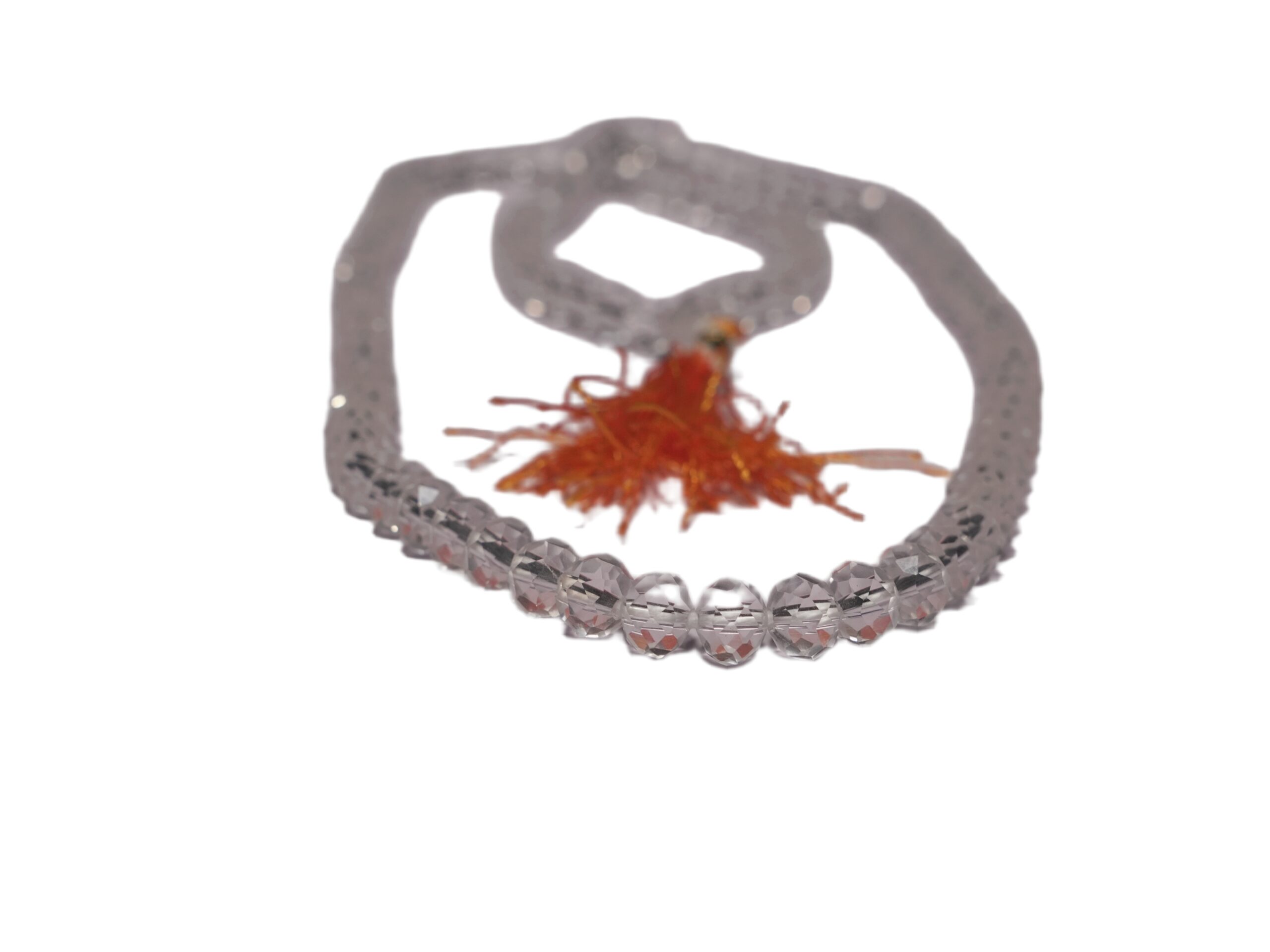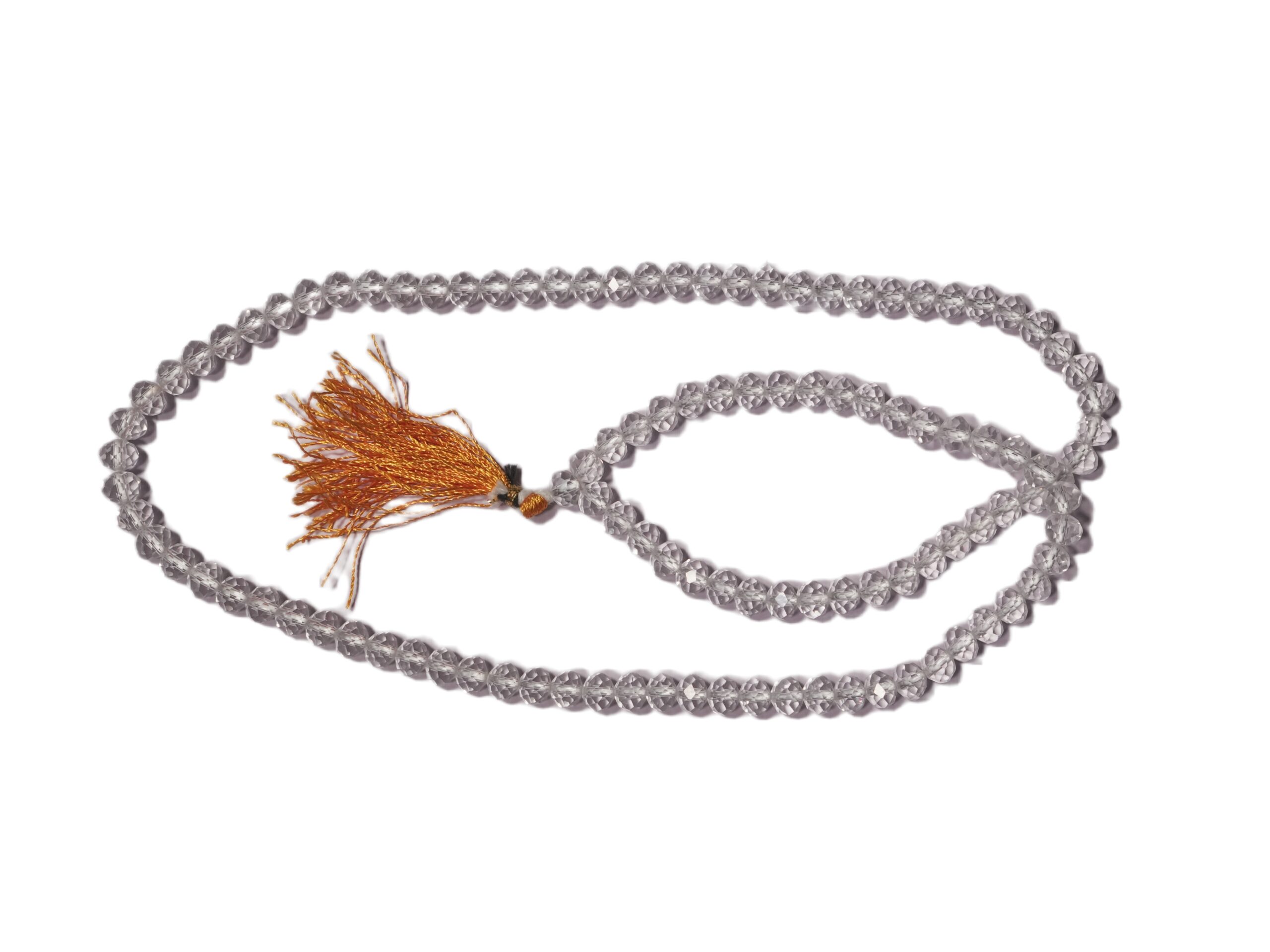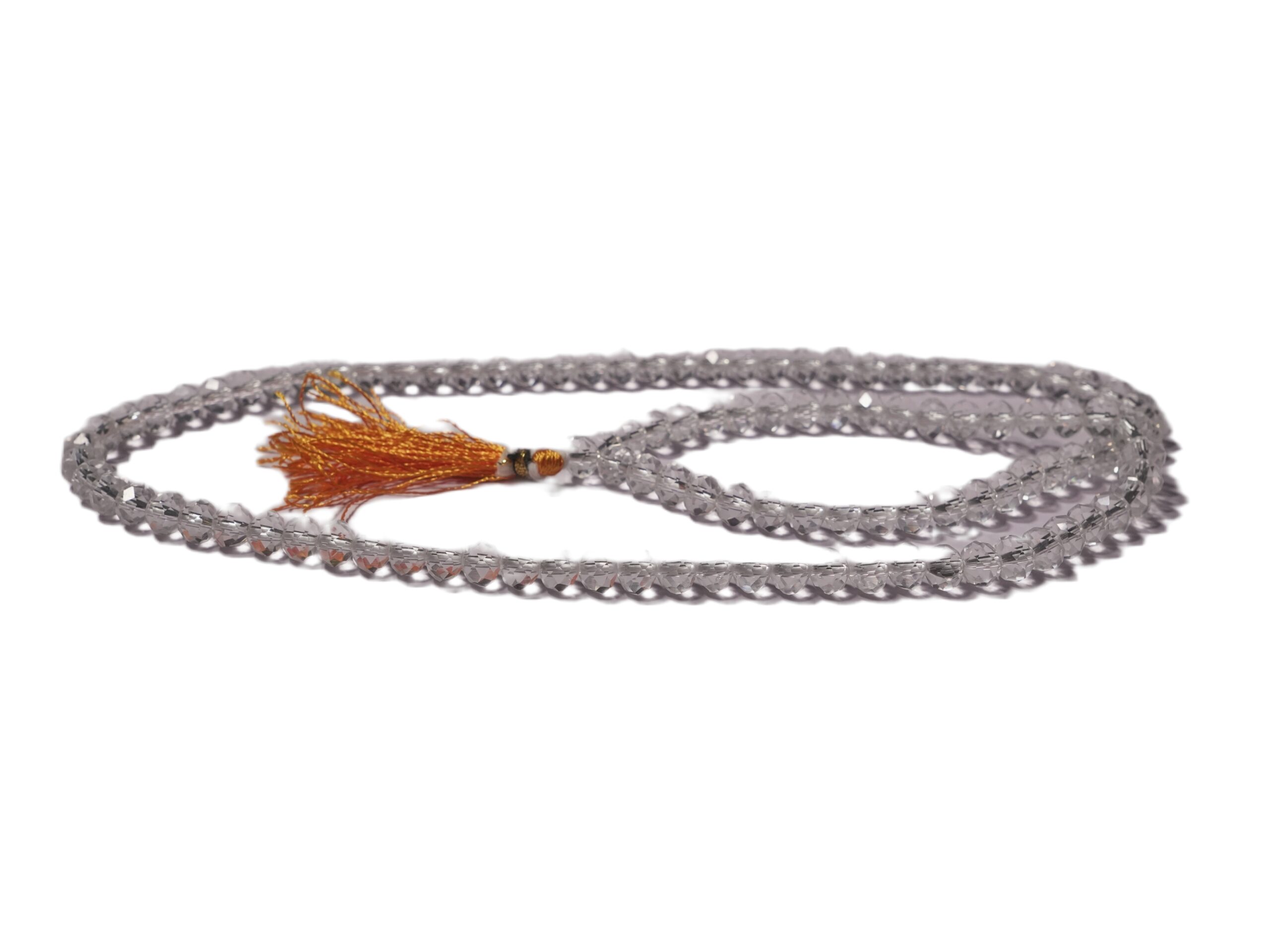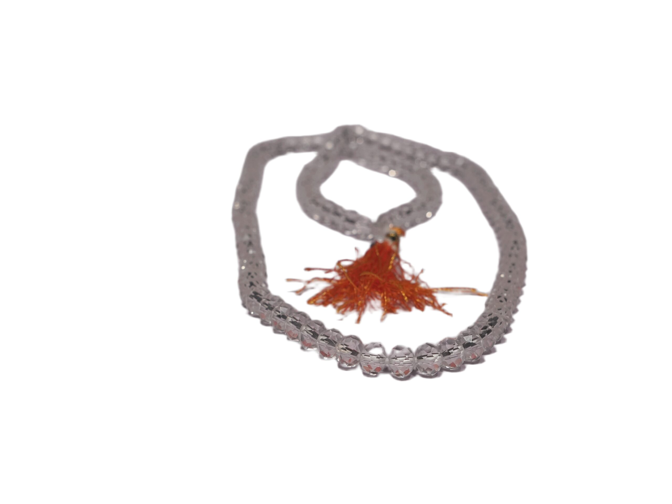 This handcrafted Japa Mala is made from 108+1 faceted crystal quartz beads, beautifully finished with a traditional orange tassel. Used for mantra chanting (जप), meditation, and prayer, the clear quartz beads radiate purity, peace, and positive energy. It is believed to calm the mind, balance emotions, and enhance spiritual growth. Perfect for spiritual seekers, healers, and meditators.