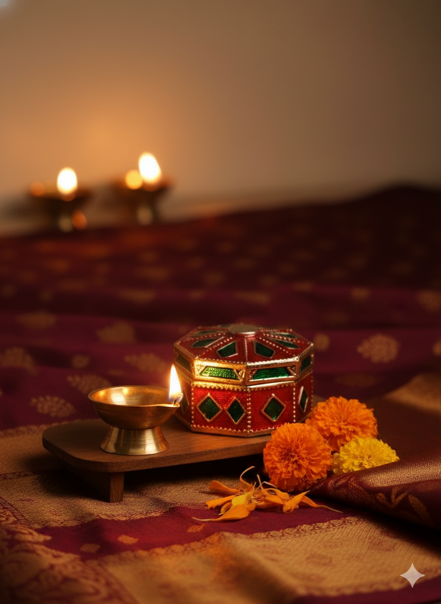 Commonly used by married women during daily rituals and festivals, the Kumkum Box reflects cultural heritage and devotion. It also makes a meaningful gift for weddings, housewarmings, or festive occasions.