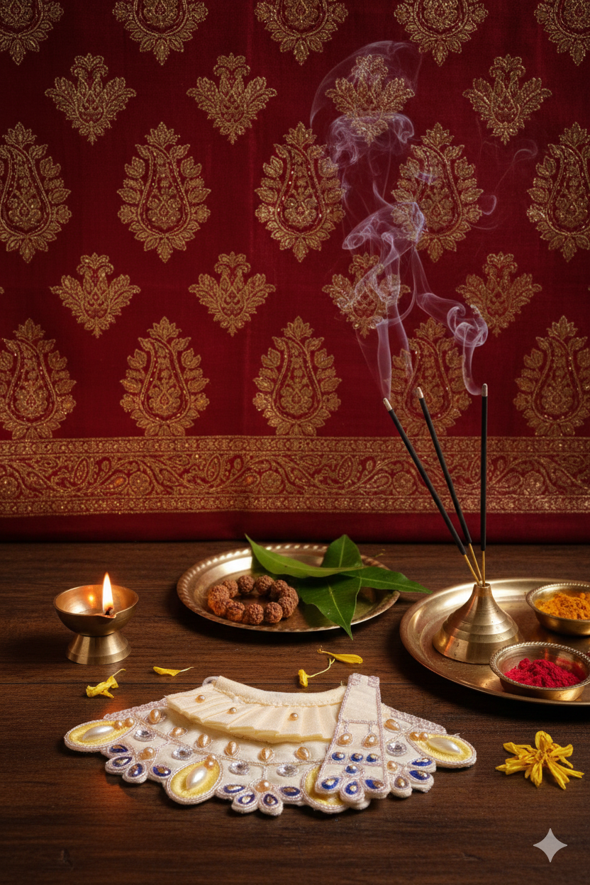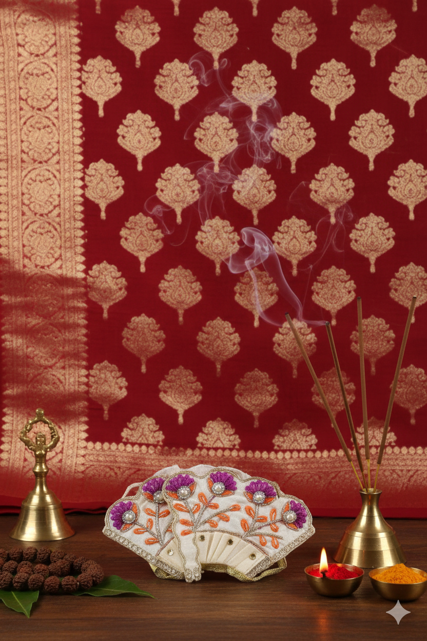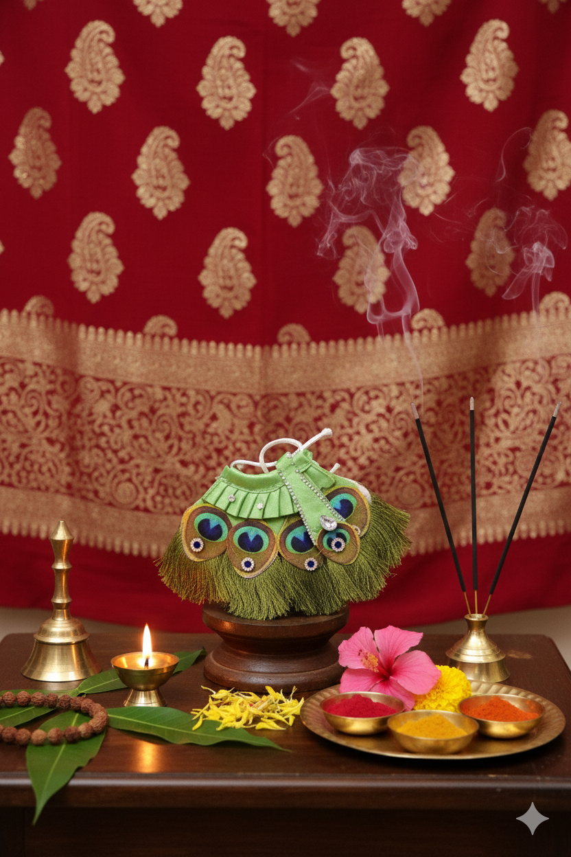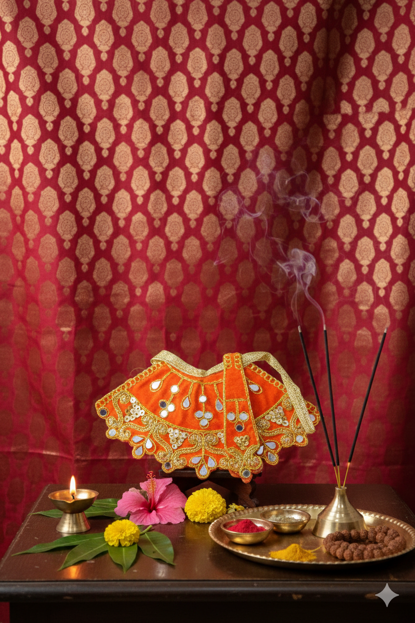 Adorn your Goddess Lakshmi idol with this elegant Lakshmi Dress Set, specially designed for pooja alankaram and festive occasions. Made with vibrant colors and fine fabric, this dress enhances the beauty of the deity, symbolizing prosperity, wealth, and divine grace.