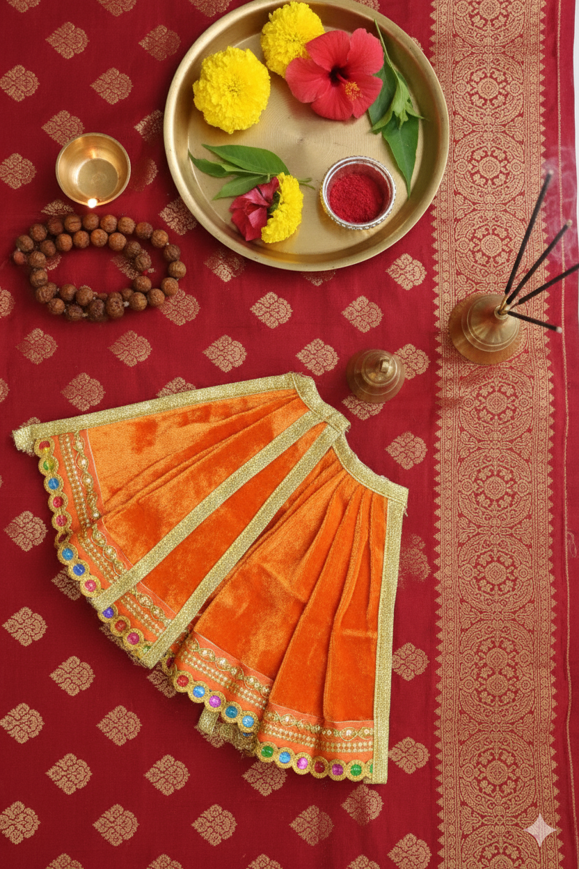 Adorn your Goddess Lakshmi idol with this elegant Lakshmi Dress Set, specially designed for pooja alankaram and festive occasions. Made with vibrant colors and fine fabric, this dress enhances the beauty of the deity, symbolizing prosperity, wealth, and divine grace.